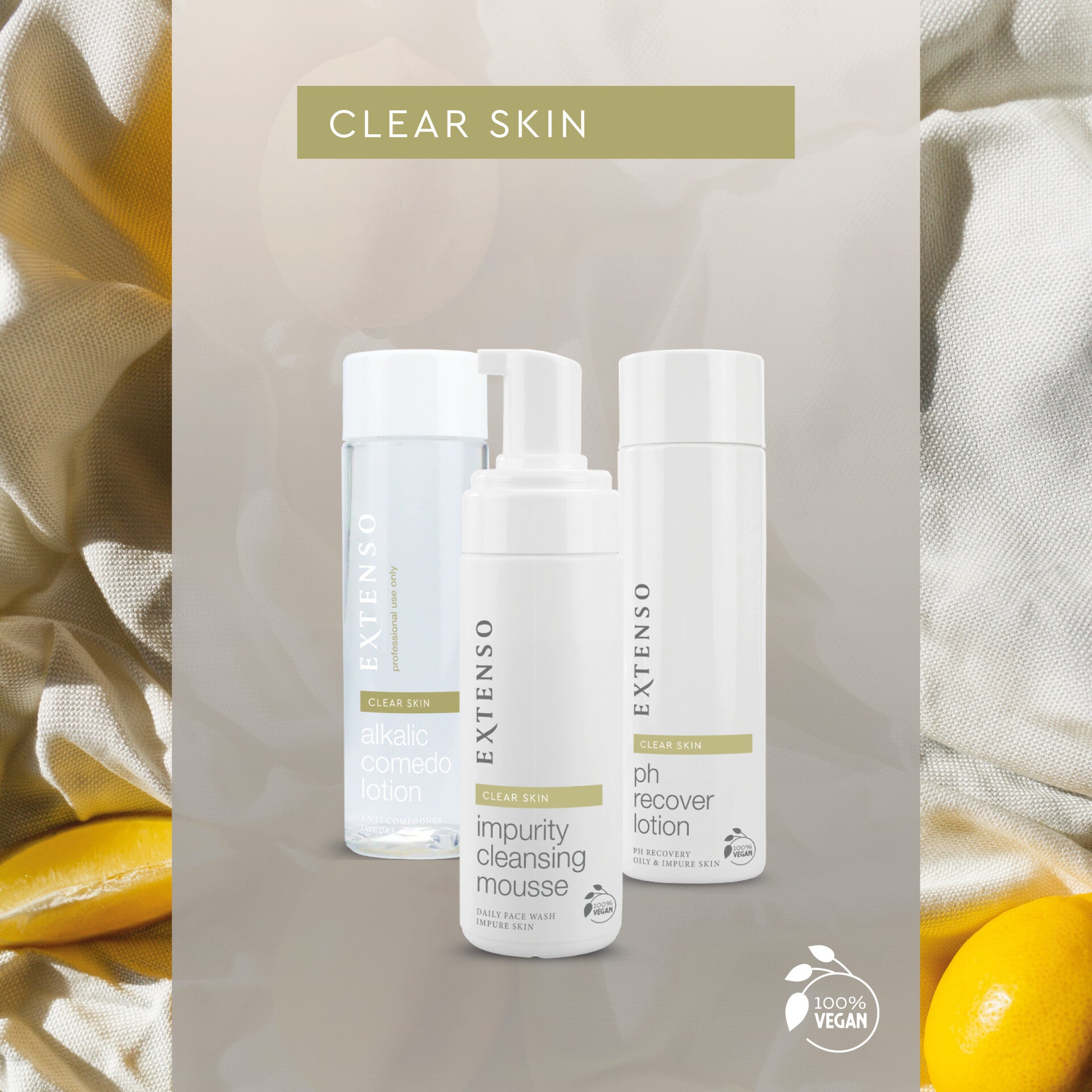 In de salon werken we met Extenso. Extenso is in Nederland ontworpen en heeft een compleet assortiment van effectieve en betaalbare huidverzorging. Alle producten zijn van hoogwaardige kwaliteit, zijn rijk aan natuurlijke werkstoffen en bevatten veel vitaminen. De producten bevatten geen overbodige geurstoffen, kleurstoffen, parabenen en worden niet op dieren getest. Extenso skincare is een complete huidverzorgingslijn voor ieder huidtype. De producten bevorderen en stimuleren de huid en vertragen de zichtbare tekenen van huidveroudering.